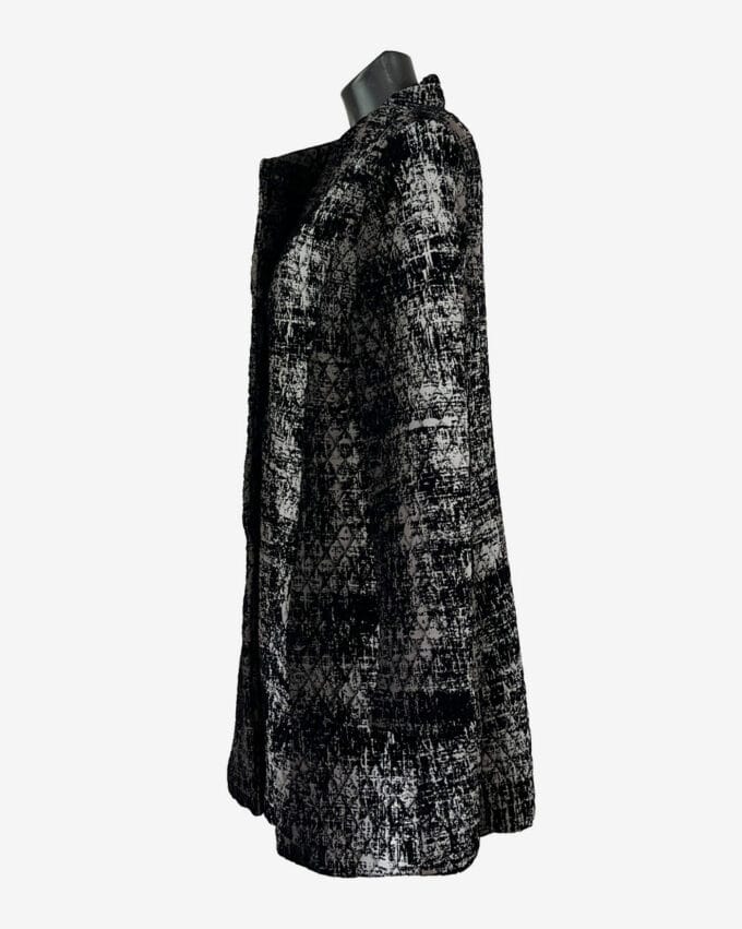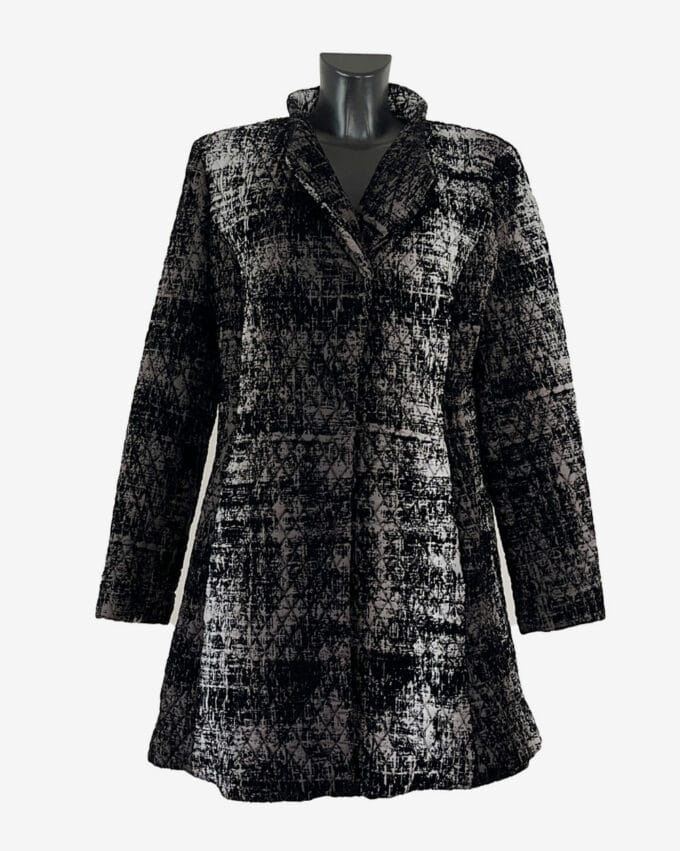 Diese hochwertige Jacke in schwarz melierter Optik vereint zeitloses Design mit erstklassigem Tragekomfort. Die elegante Passform, kombiniert mit edlen Materialien, macht sie zum idealen Begleiter für kühle Tage. Perfekt für modebewusste Frauen, die Stil und Qualität schätzen.